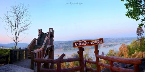 สำนักงานพัฒนาชุมชนอำเภอศรีเชียงใหม่ ประชาสัมพันธ์การท่องเที่ยว ผาเบิ่งเวียง ที่บ้านห้วยช้างเผือก หมู่ที่ 9 ตำบลพระพุทธบาท อำเภอศรีเชียงใหม่ สามารถเห็นวิว ทิวทัศน์ทั้ง 2 ฝั่ง สวยงามมาก